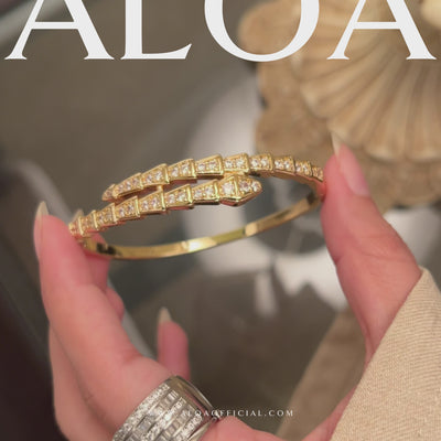 This bracelet features series of angular, interlocking "scales" that create a modern, structured take on the classic snake silhouette. Each geometric segment is individually set with sparkling zircons, creating a rhythmic play of light across the wrist. The elegant "wrap" design tapers beautifully, allowing the head and tail to overlap for a dynamic, three-dimensional effect.