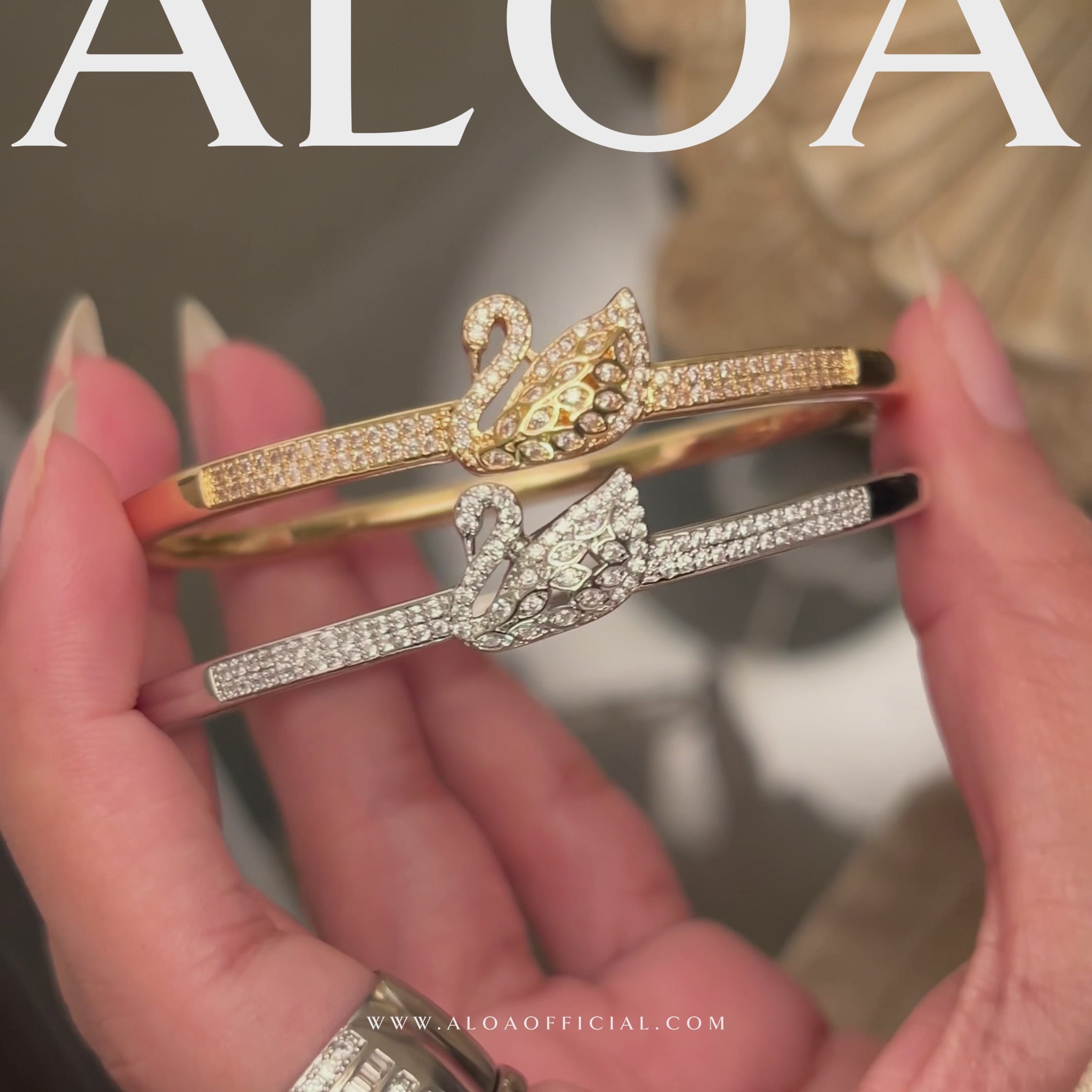 This openable bracelet features a beautifully detailed swan motif, meticulously pavé-set with brilliant clear zircons.The central motif is flanked by a dual-row of hand-set stones along the band, adding an extra layer of luxury and sparkle.